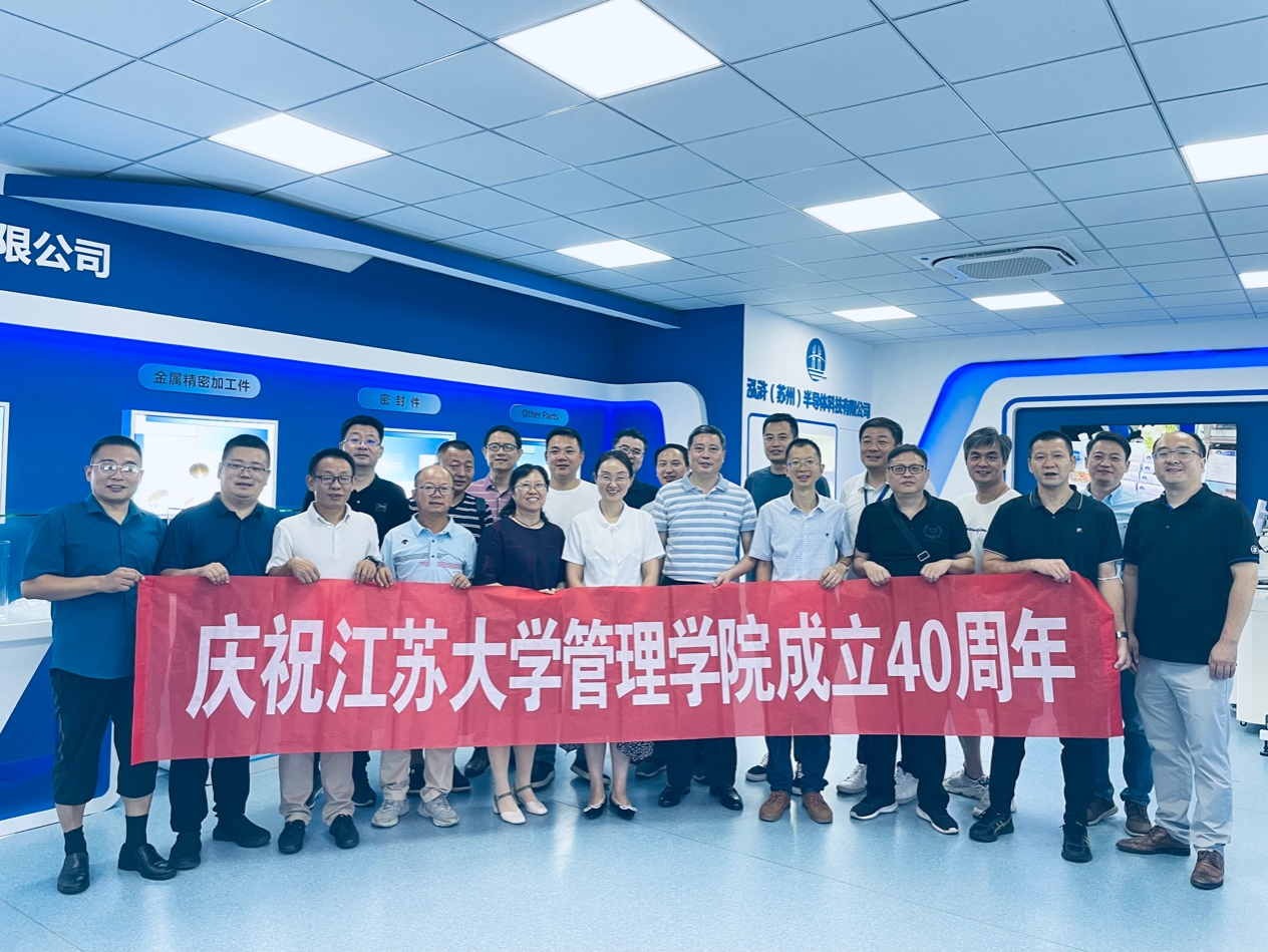 在苏州德林泰精工科技有限公司董事长杨国宏(工业工程98级校友)、总经理曾飞(工业工程98级校友),泓浒(苏州)半导体科技有限公司总经理吴军(工业工程97级校友)的带领下,大家参观了两家校友企业的样品展厅、智能化生产线等,并在公司会议室举行校友联谊座谈会。