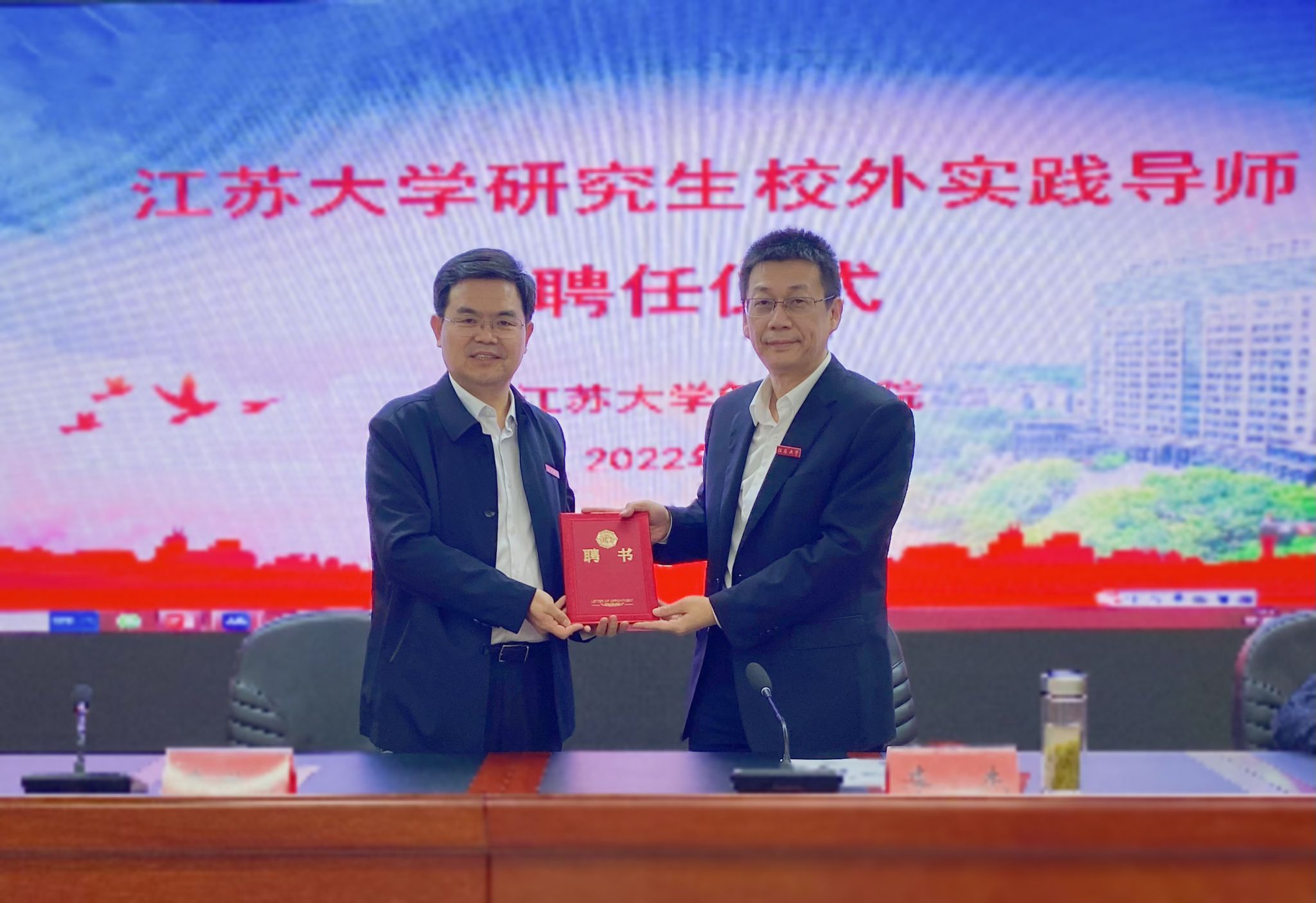 院长杜建国教授主持。在聘任仪式上,李洪波为李杰颁发了校研究生实践导师聘书,并佩戴江苏大学校徽。